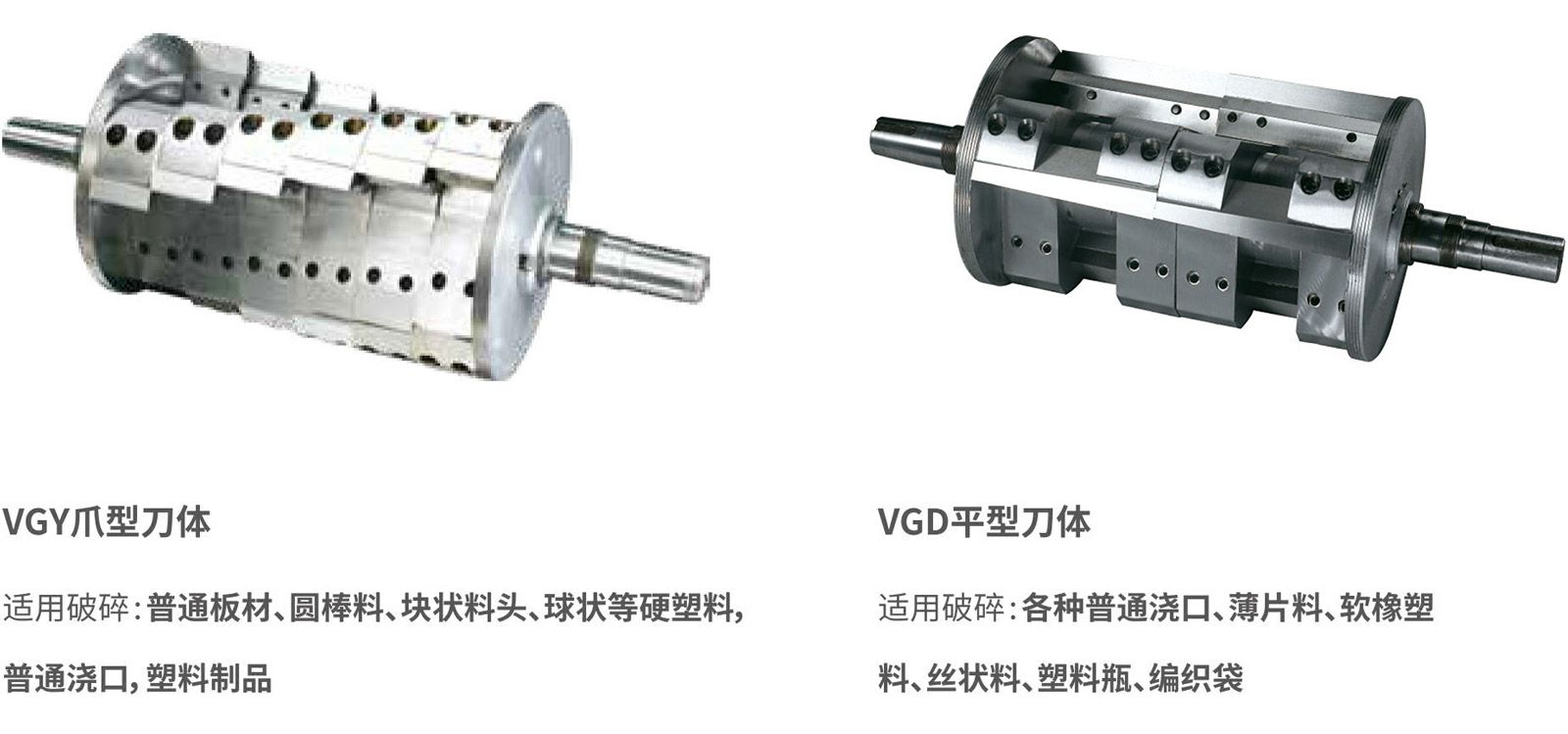 前置刀片,加大刀片切削角度,提高切削效率,成型颗粒形状均匀,粉末少。