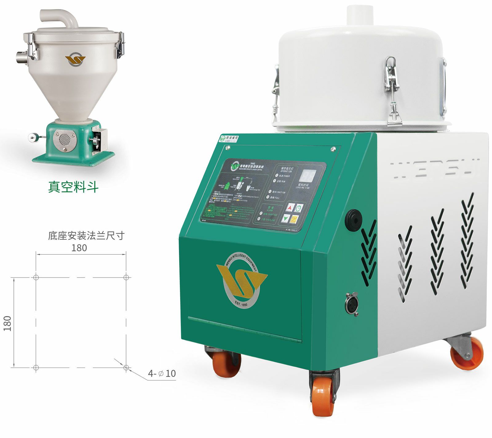性能特点主机与料斗分体设计,安全、简便。独立滤清装置,方便清除积尘。不锈钢料斗。过载、缺料报警。700G 采用高速整流马达,体积小、吸力强,适合用于新料输送。此系列产品通过欧洲 CE 标准认证。